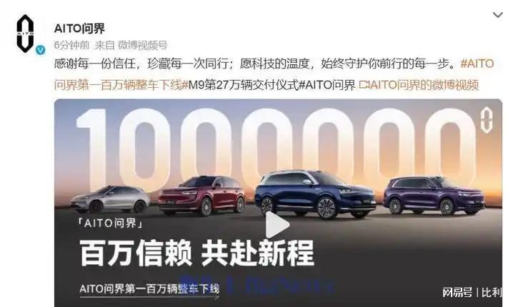 2026年1月,问届第100万辆车正式下线,耗时仅43个月,远超特斯拉(8年)、蔚来(11年)、理想(60个月)等同行。